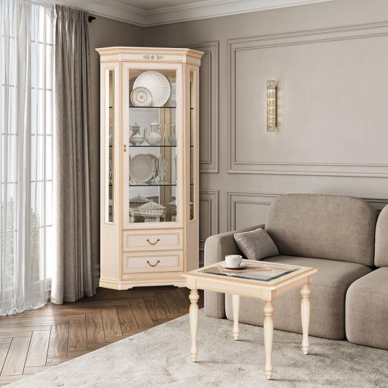 Шкаф для посуды угловой (с зеркалом) Джоконда крем купить в Челябинске