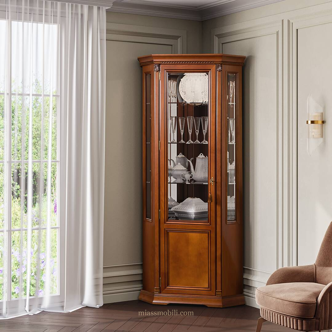 Шкаф для посуды угловой Лоренцо вишня Lorenzo вишня купить в Челябинске