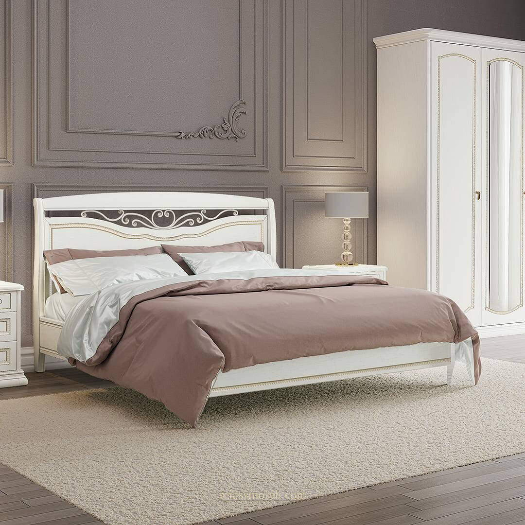 Кровать двойная (1800х2000) Luigi цвет белый с кованым элементом без ножной спинки Кровати купить в Челябинске