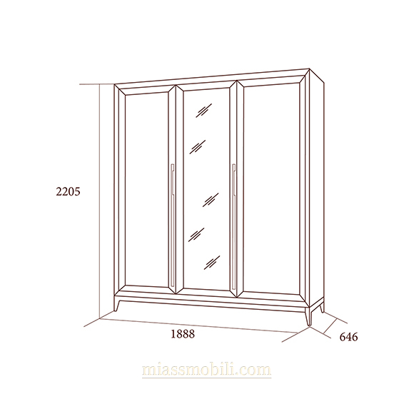 Шкаф 3-х дв .для платья и белья Modena дуб сатин с зеркалом дуб Сатин Modena дуб Сатин купить в Челябинске