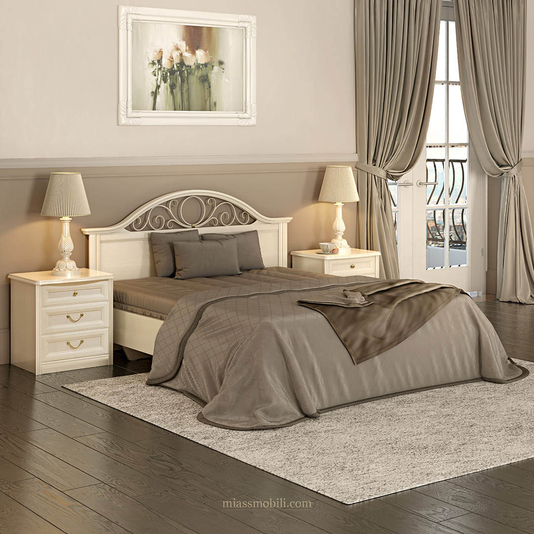 Кровать двойная без ножной спинки с ящиком для белья и КЭ Ekaterina крем купить в Челябинске