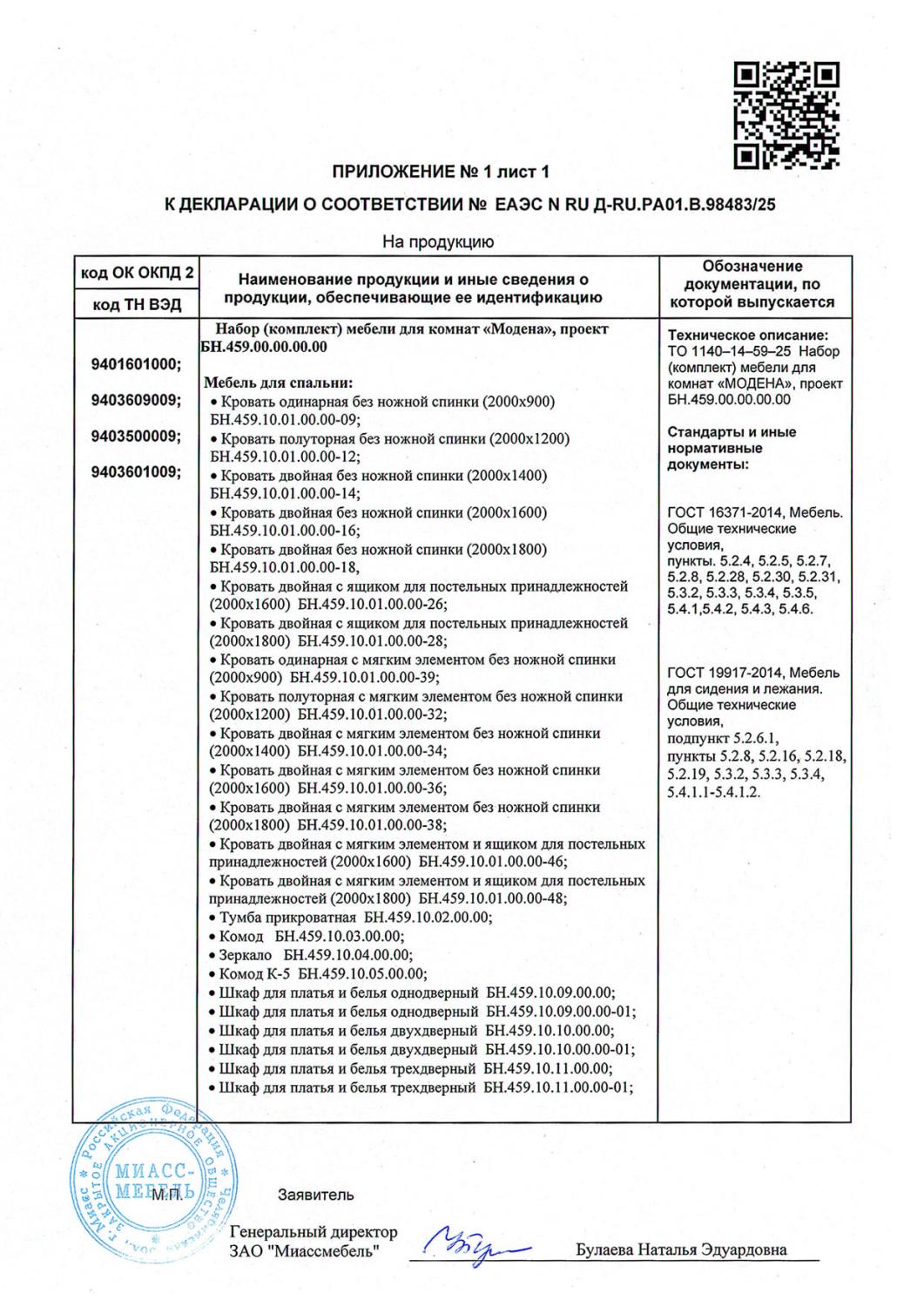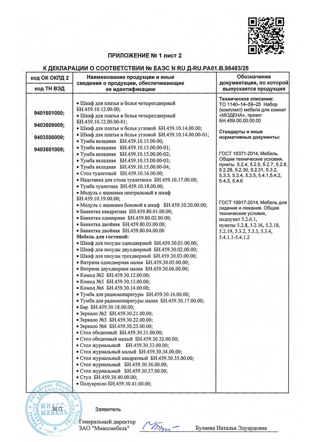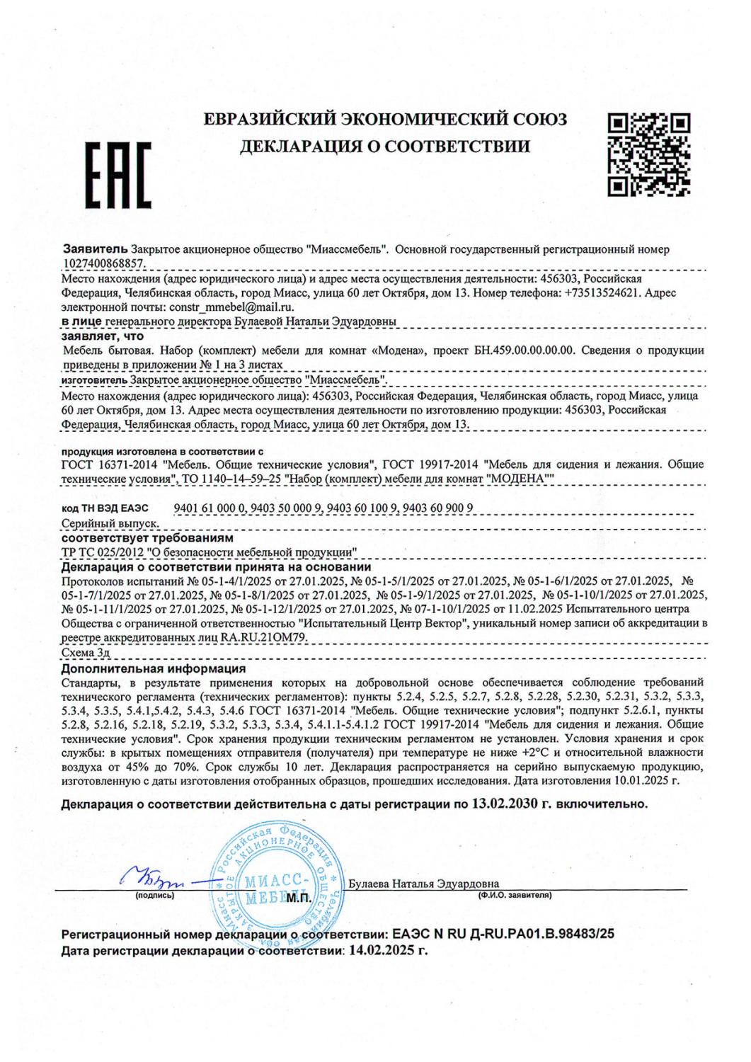 Декларация мебель Модена