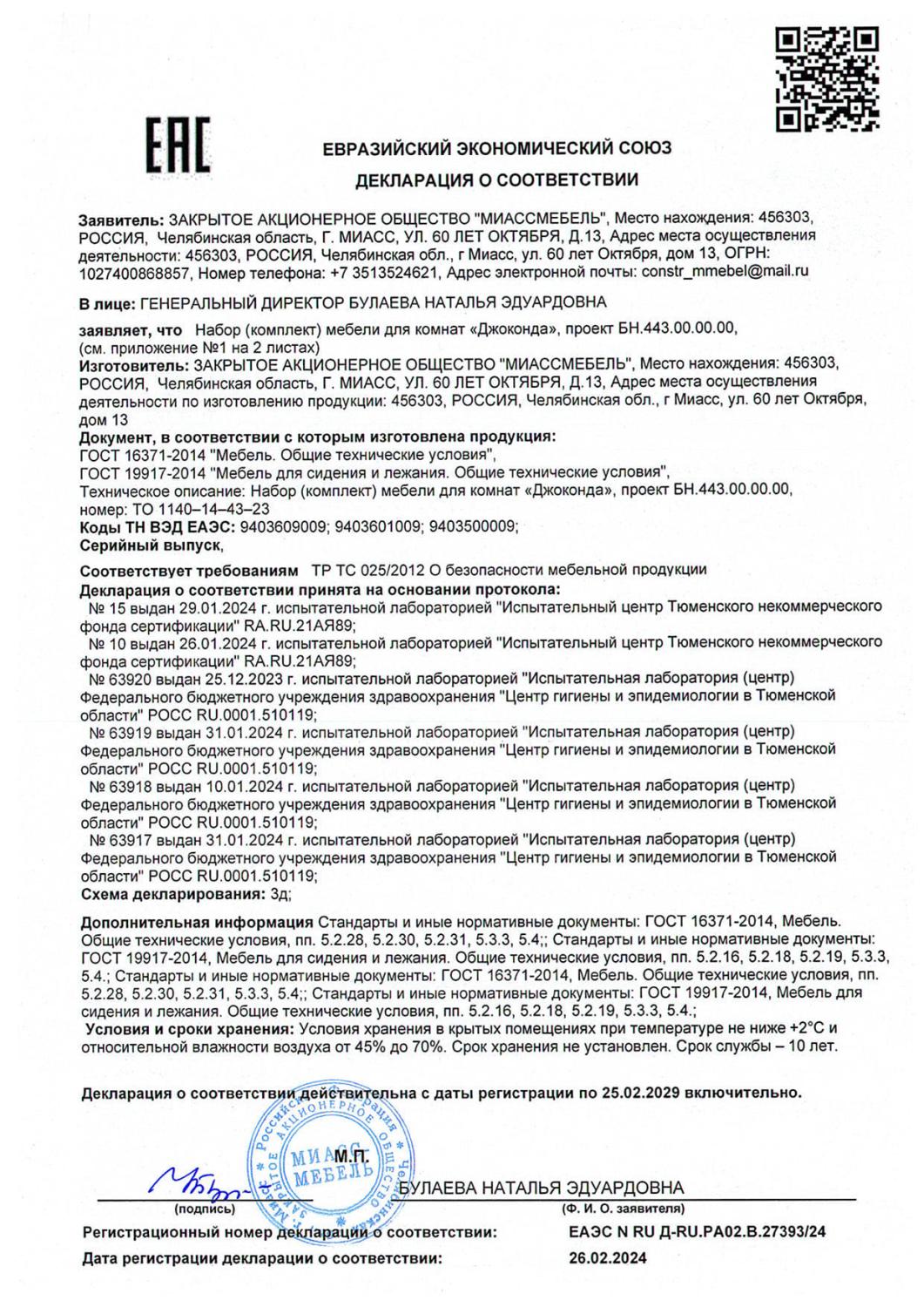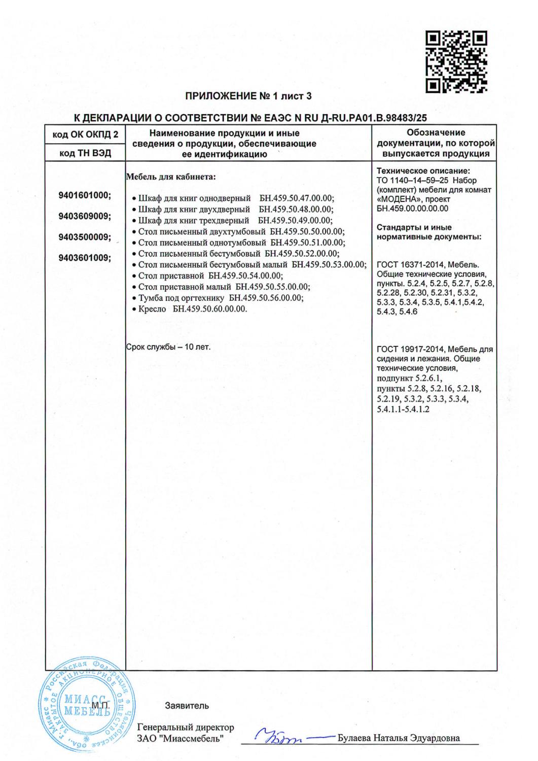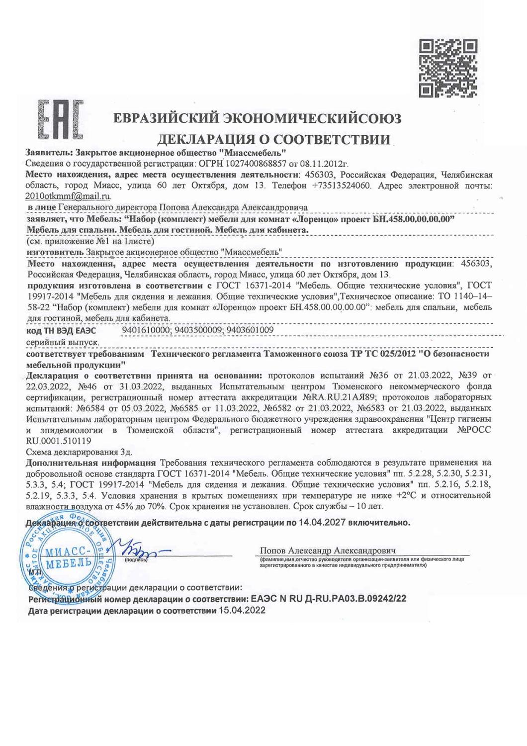 Декларация мебель Модена