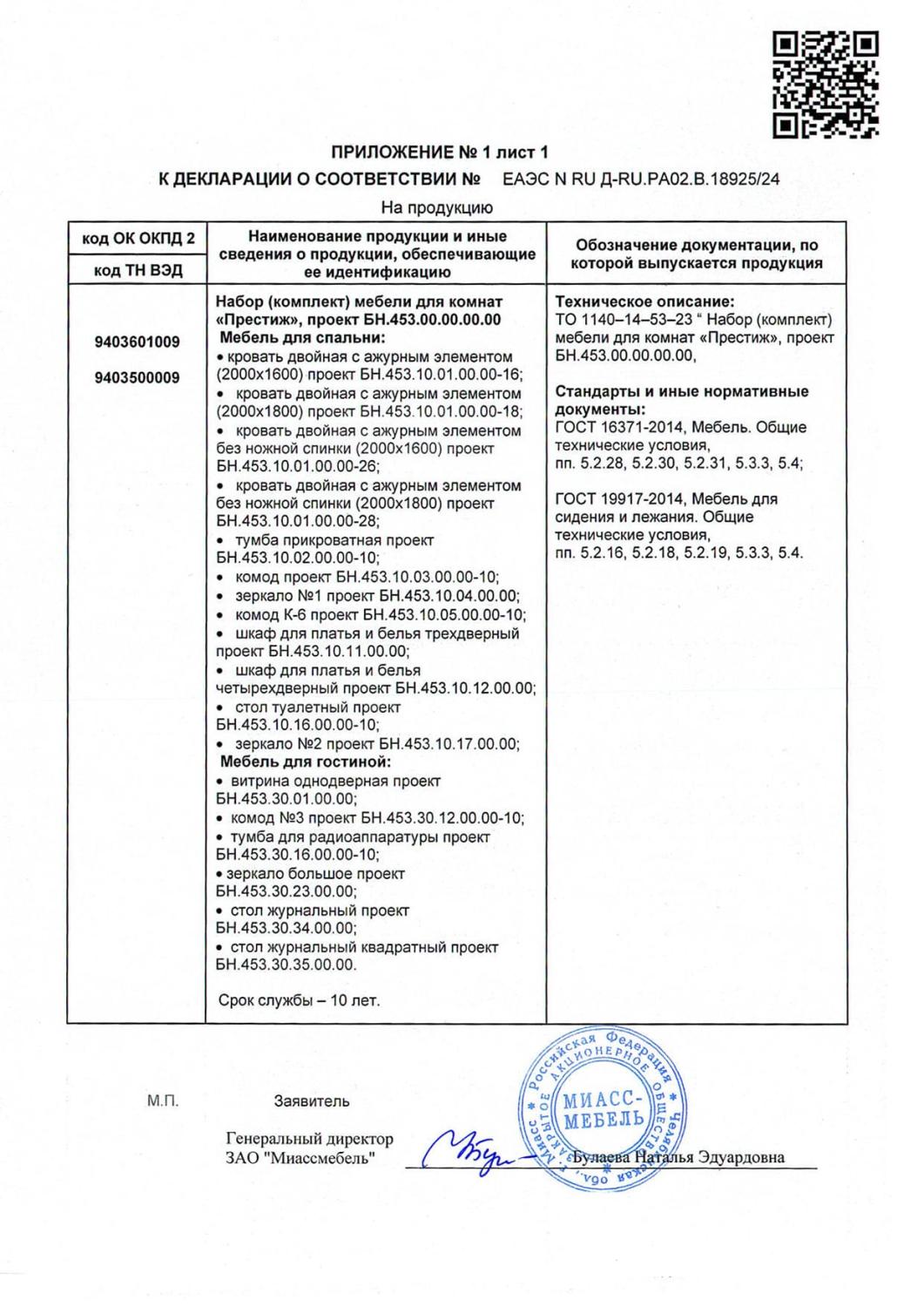 Декларация мебель Престиж