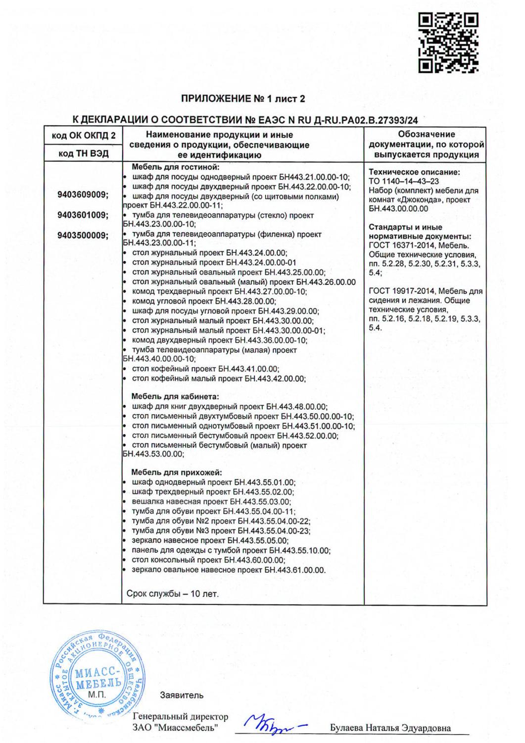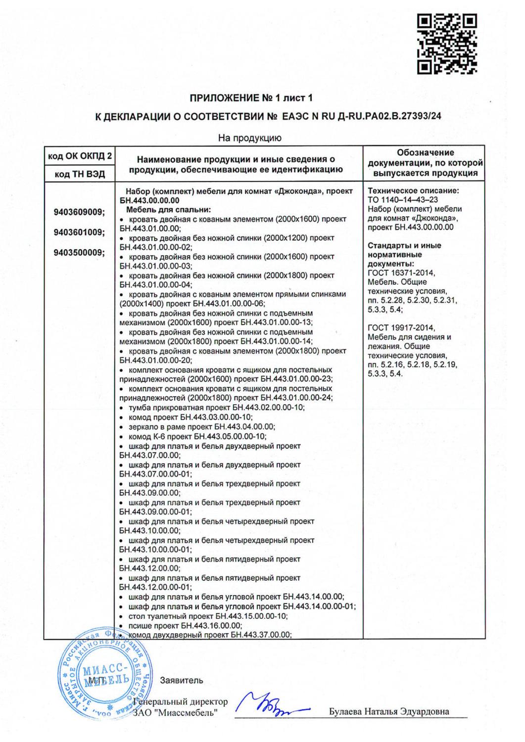 Приложение к декларации Джоконда лист 1