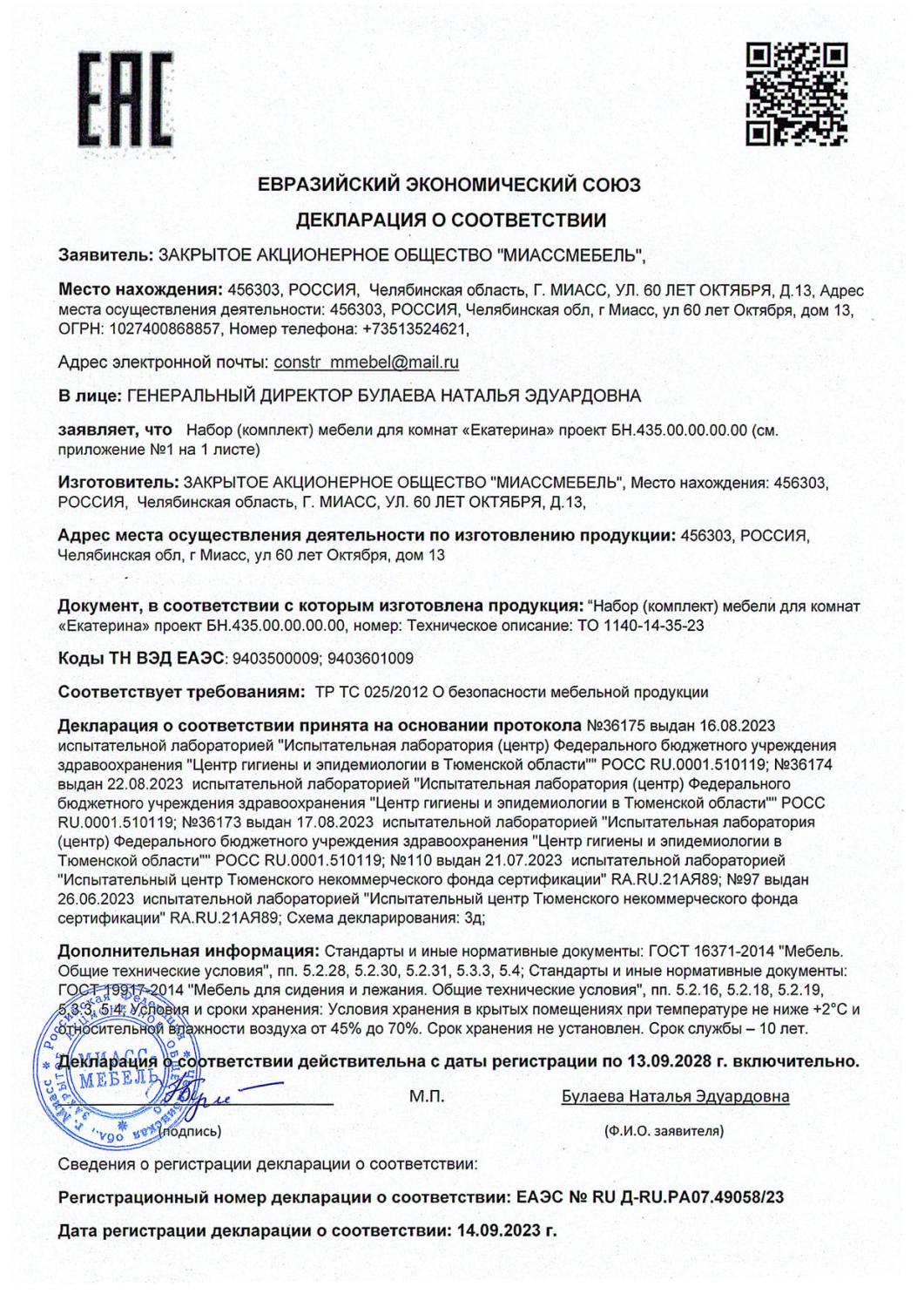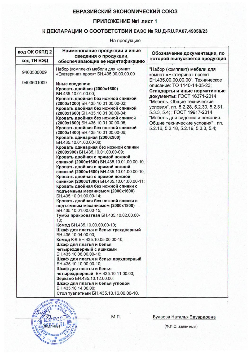 Декларация мебель Екатерина